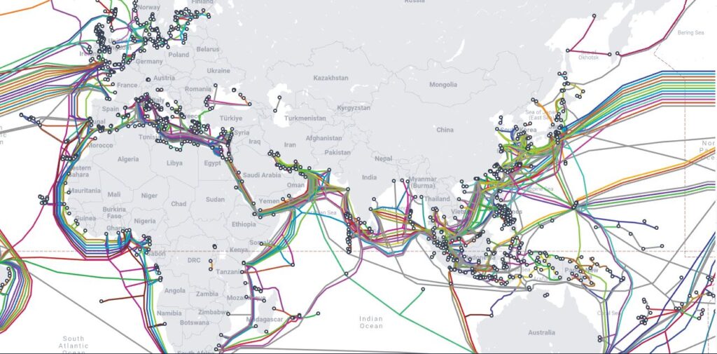 સામાન્ય રીતે આપણને એમ લાગે છે કે ઈન્ટરનેટ સેટેલાઇટ દ્વારા ચાલે છે, પરંતુ વાસ્તવિકતા કંઈક જુદી છે. દુનિયાનો લગભગ 90% થી વધુ ગ્લોબલ ડેટા દરિયામાં અંદર બિછાવેલા ફાઇબર ઓપ્ટિક કેબલ્સ દ્વારા ટ્રાન્સફર થાય છે. યુરોપ, આફ્રિકા અને પશ્ચિમ એશિયા સાથે ભારતને જોડતા મુખ્ય કેબલ્સ પણ અહીંથી જ પસાર થાય છે. તેમાં SEA-ME-WE, AAE-1 અને EIG જેવી મોટી કેબલ સિસ્ટમ્સ સામેલ છે.